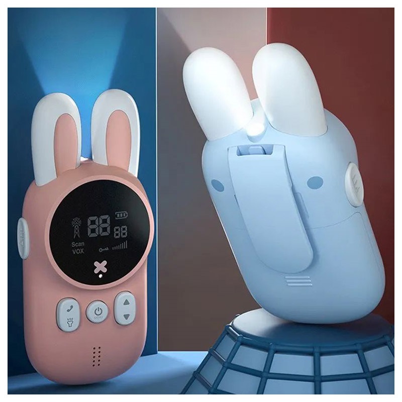 Poboljšajte komunikacione veštine vaše dece i obezbedite im više svakodnevne zabave daleko od mobilnih telefona uz pomoć ovih neodoljivih voki-tokija u obliku zeca. Moći će da komuniciraju sa prijateljima ne koristeći internet, uz stabilan domet do 3km; potrebno je povezati se na isti kanal uz šifru grupe. Integrisana baterijska lampa može da se koristi kao noćno svetlo, dok je LCD ekran sa pozadinskim osvetljenjem pogodan za upotrebu u mračnijim uslovima, što sve pomaže i utiče na kvalitet vaših noćnih avantura. Zahvaljujući malom i laganom dizajnu ovaj voki-toki odgovara dečijoj ruci, dok integrisana štipaljka omogućuje da ga lako negde zakačite u trenucima kada ga ne koristite. Ovaj preslatki dečiji voki-toki pogodan je za upotrebu unutar ili van kuće, i može biti idelan poklon za vaše mališane.