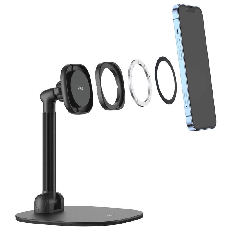 Vrig MG-04 Rotating Magnetic Desk Stand for iPhone 12-17 & MagSafe Cases – Adjustable 22-36 cm Carbon-Steel Phone Holder