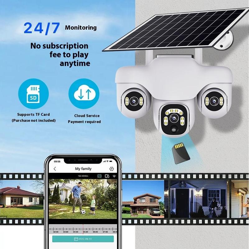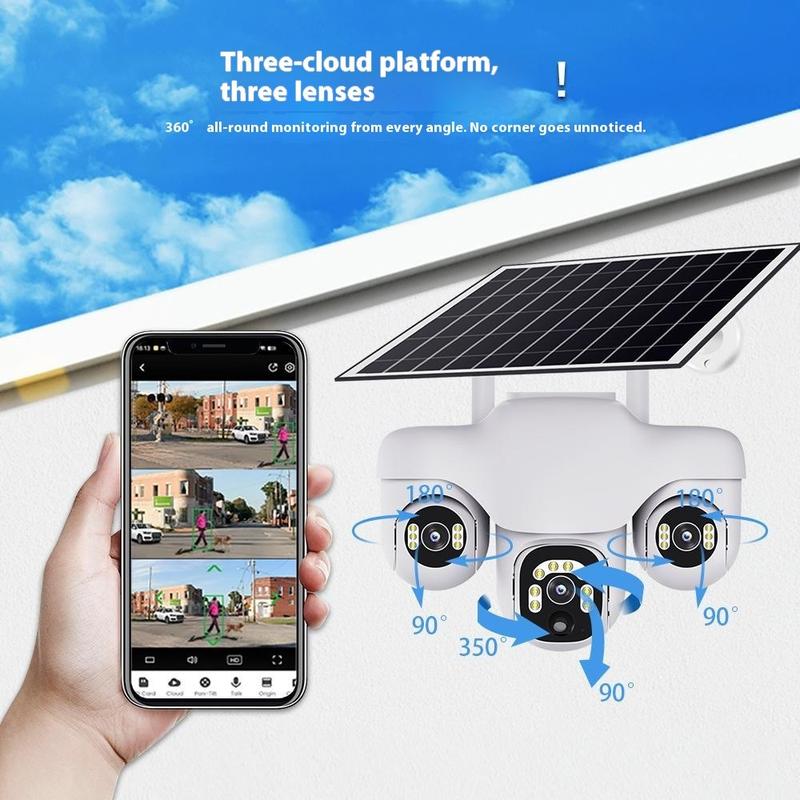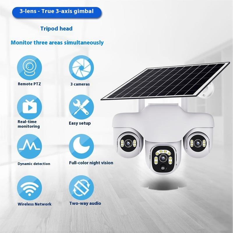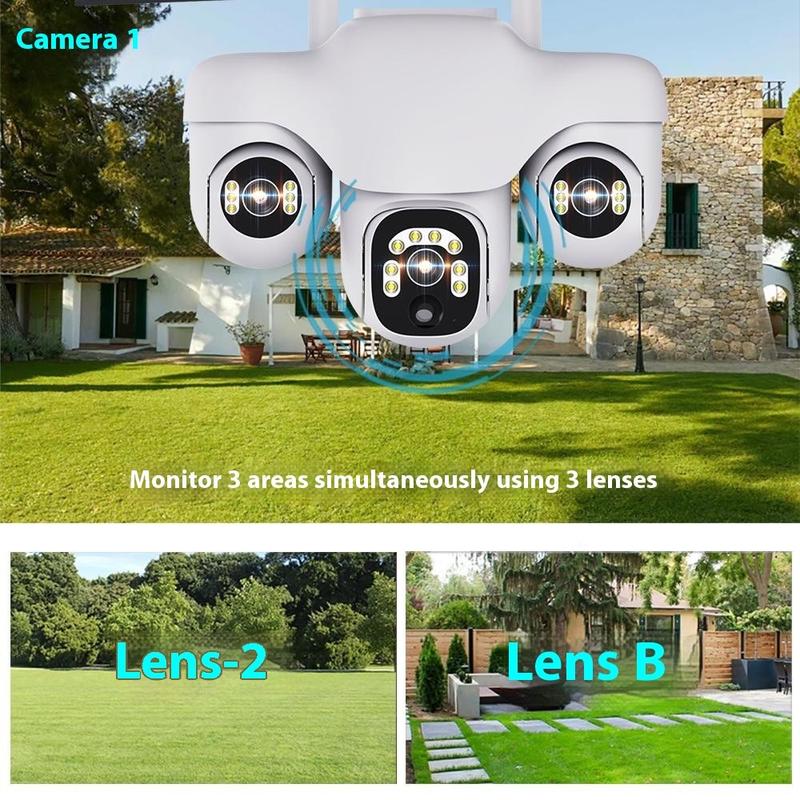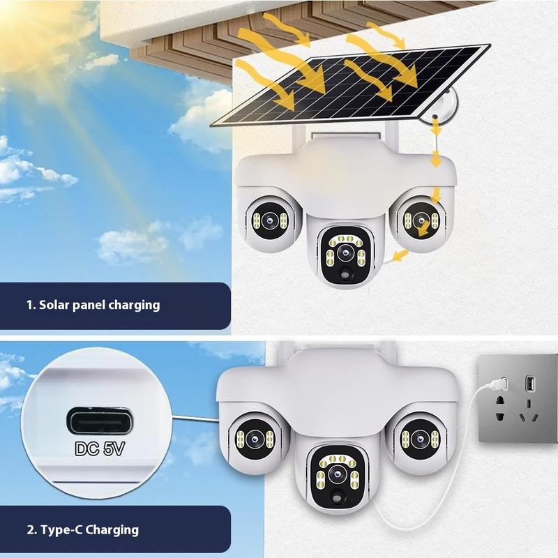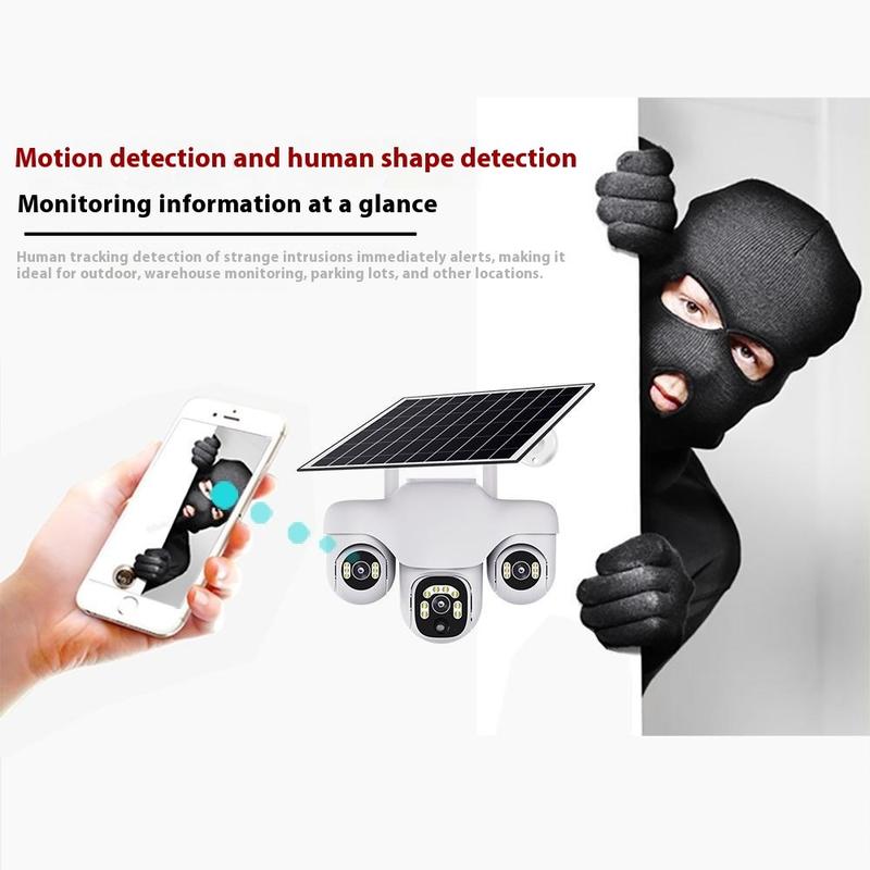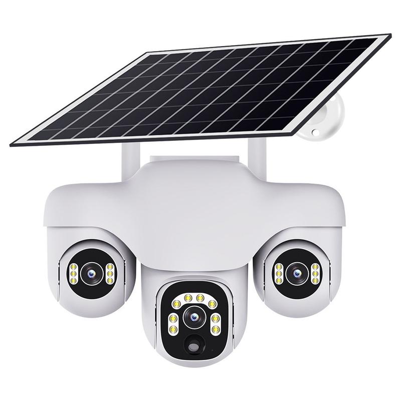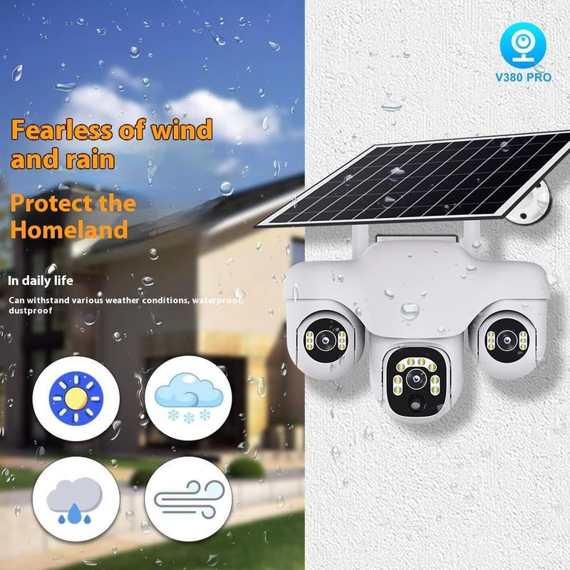VTS31 V380 Solar-Powered PTZ Security Camera with Triple Lens - Outdoor WiFi Surveillance Camera with Motion Detection