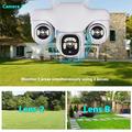 This model combines panoramic coverage, smart detection features, and night monitoring in one outdoor-ready design. Thanks to its triple-lens layout and rotating PTZ structure, it can monitor a much wider area than many standard single-lens cameras, helping reduce blind spots around your property.