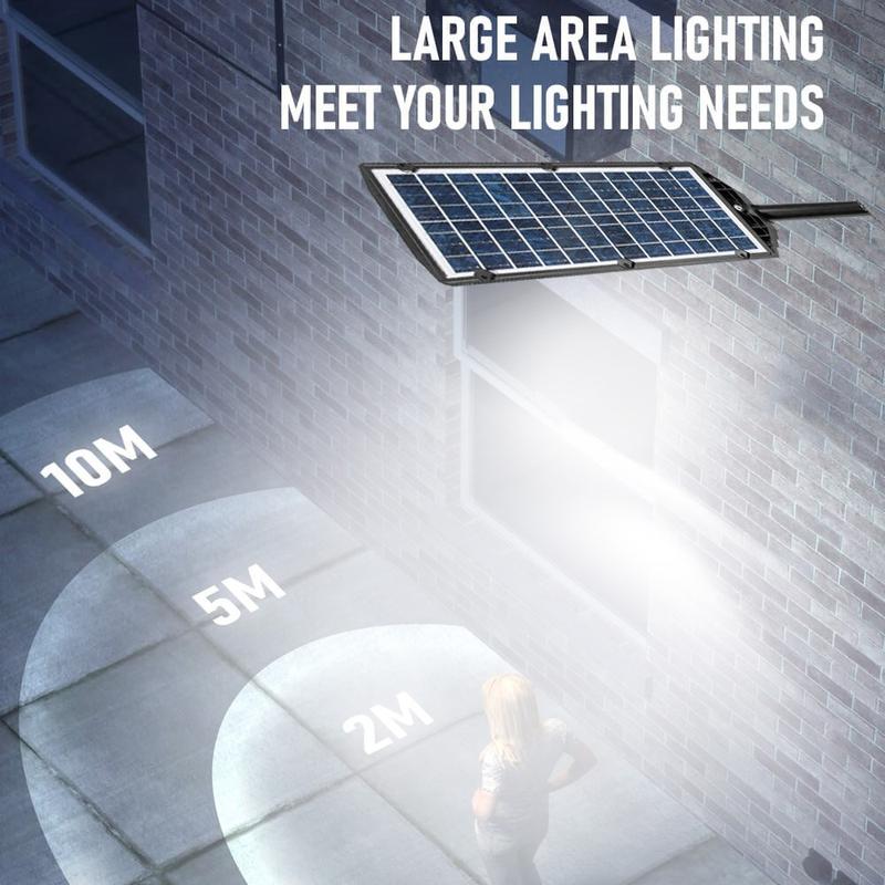 W7101B Solar Wall Light with Motion Sensor - 3-Mode Waterproof Outdoor LED Lamp with Extra-Wide Panel