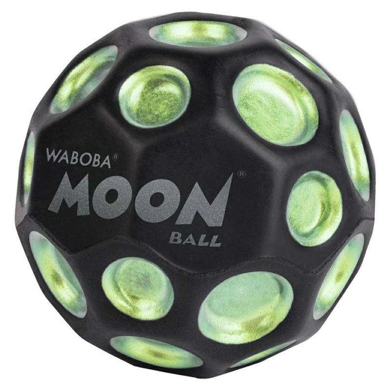 Compact and easy to carry, the Waboba Dark Side of the Moon Ball fits easily into a pocket or backpack, so it is always ready for spontaneous play on the go. It is ideal for outdoor games, solo bounce practice, and fast reaction play with friends. With its bold design, strong bounce, and glow-in-the-dark visibility, this ball combines style, movement, and fun in one compact toy.