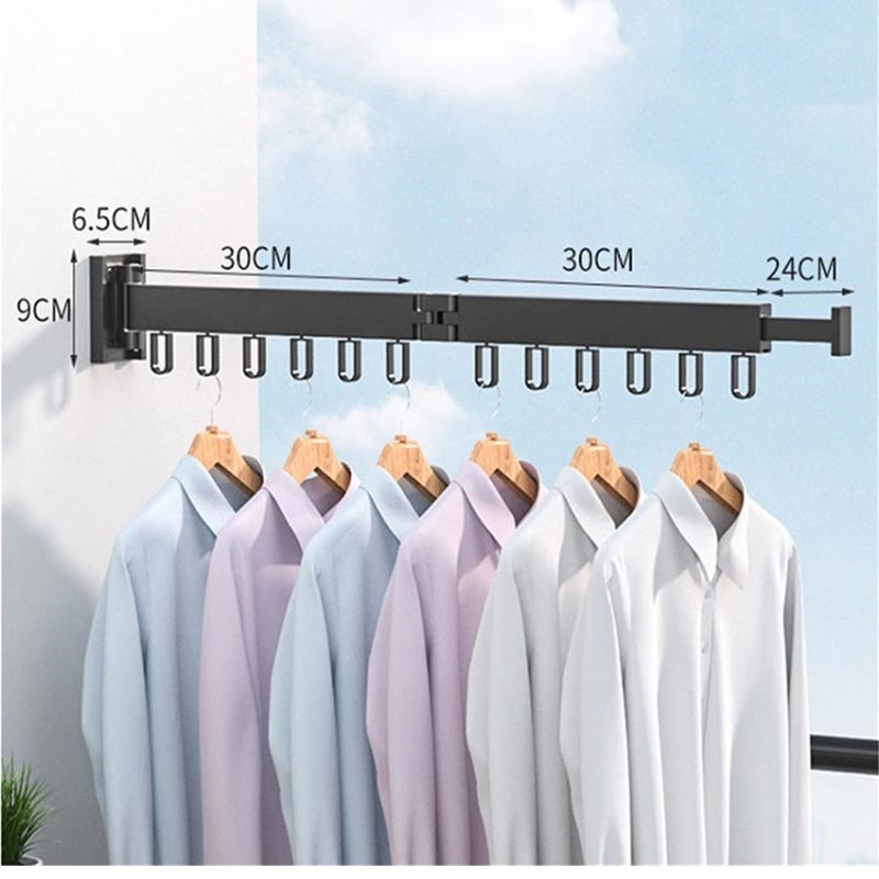Adjustable Retractable Wall-Mounted Laundry Hanger Rack - Space-Saving Clothes Hook with 2 Joints