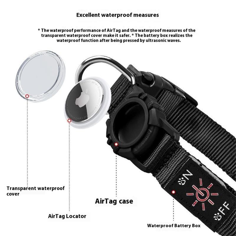 LED Dog Collar with Case for Apple AirTag 1/2 - Waterproof Anti-Lost Collar with Rechargeable Light