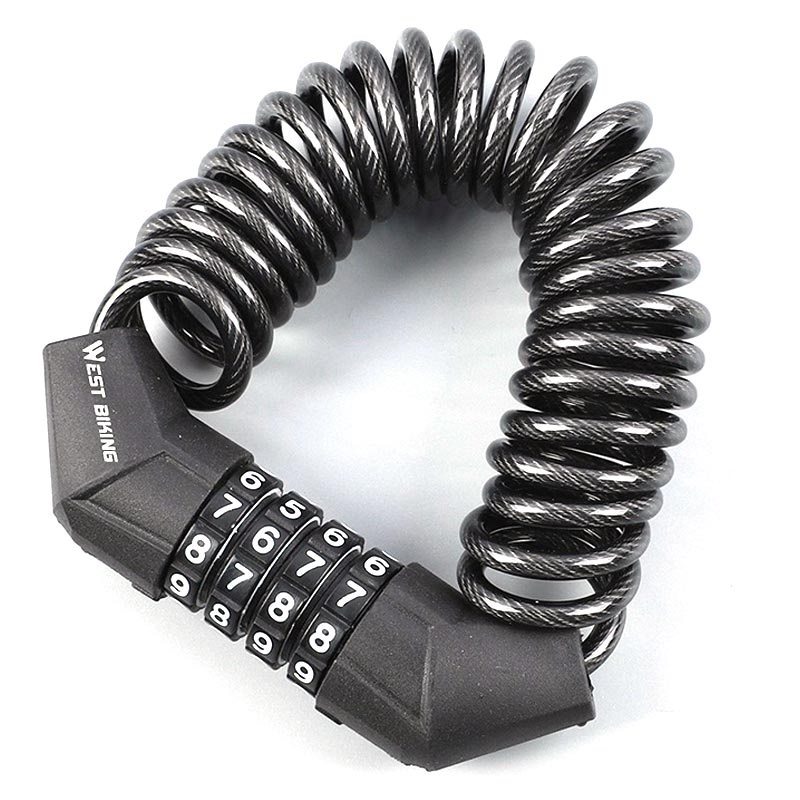 Protect your bike from theft with this West Biking anti-theft security bike lock Code. You can set up a thousand different combination codes, ensuring security with a 4-code password lock. The helmets can be easily locked too on the bike by wrapping the retractable cables around. The default password of the West Biking bike lock is 0000, and you can change it easily (unlock it, turn it for 90-degree, set the code, and lock it).