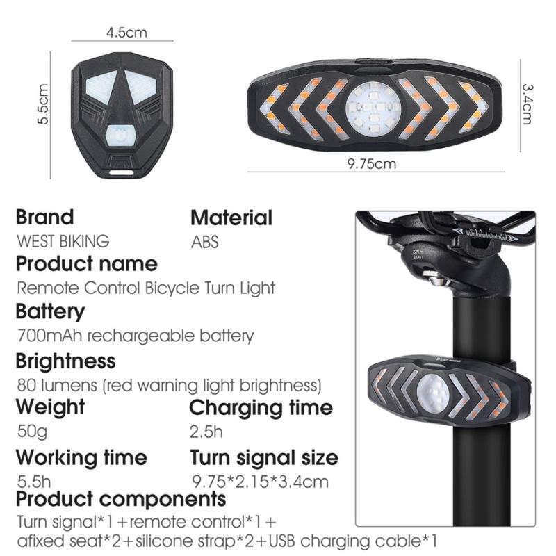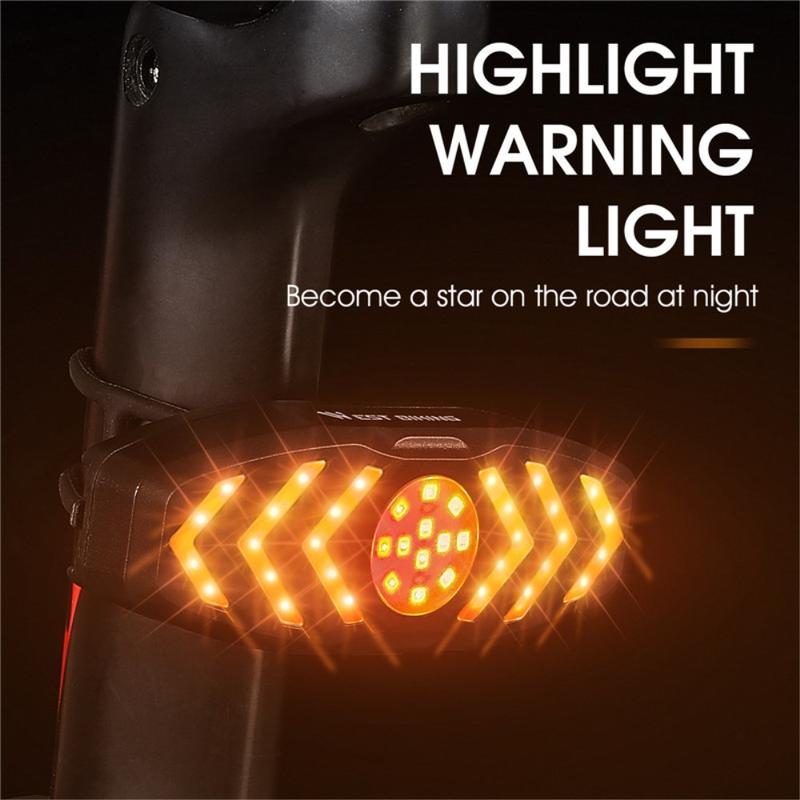 WEST BIKING YP0701313 Rechargeable Bike LED Tail Light Remote Control Bicycle Cycling Turn Signal Warning Rear Lamp with Horn Reminder Tone