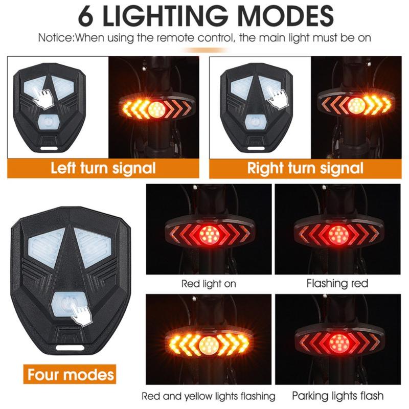 6 modes: constant red light, red light flashing, all light flashing, left turn signal, right turn signal, parking light flash(flash once every 6 seconds)