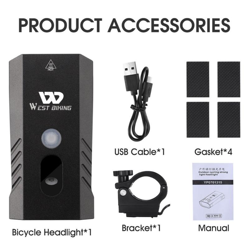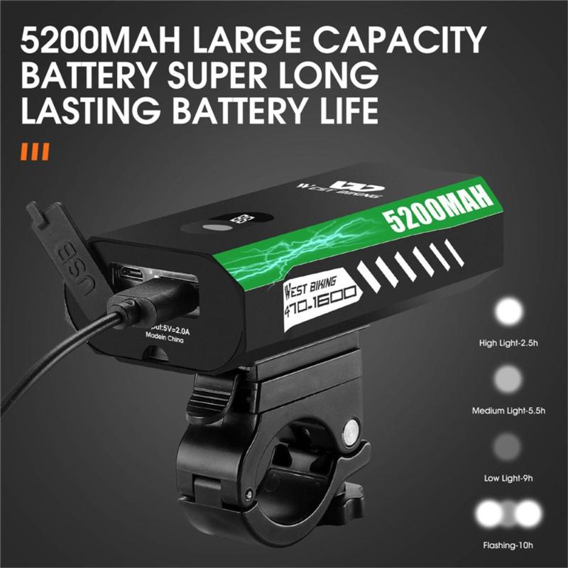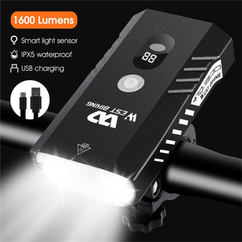 WEST BIKING YP0701329 1600LM Bright LED Bike Front Light Bicycle Night Cycling Safety Lamp Flashlight