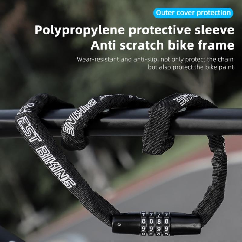 The bicycle chain lock is wrapped in a polypropylene fabric, which protects the chain and prevents it from scratching your bicycle frame
