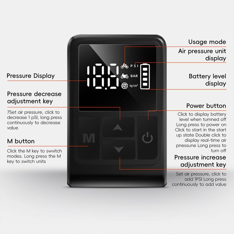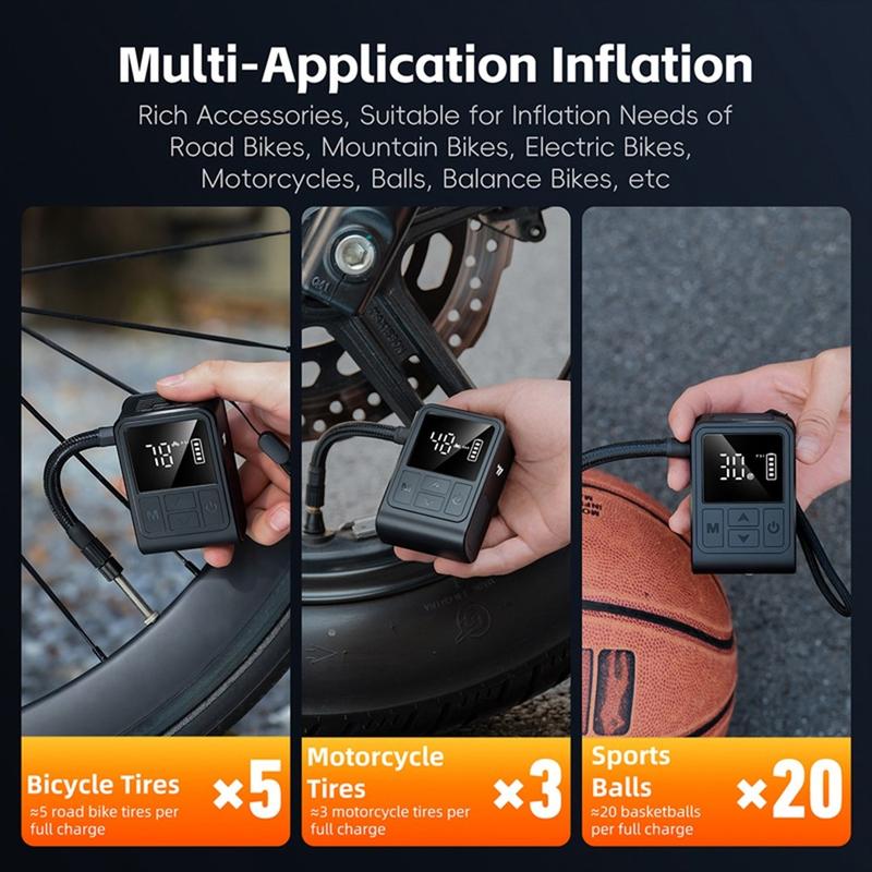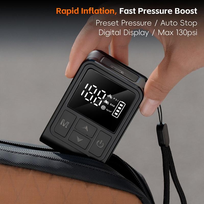 This WEST BIKING portable air compressor is ideal for riders who want a dependable and easy-to-carry inflator. Its preset function allows unattended inflation, while the digital display ensures accurate pressure every time. Whether you’re cycling, motorbiking, or inflating sports balls, this pump combines convenience, power, and precision in one compact device.