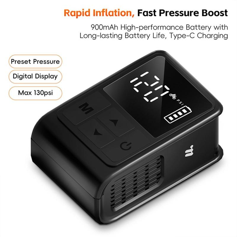 West Biking YP0711196 Electric Bike Pump / Portable Digital Air Compressor with 130 PSI High Pressure & Rechargeable Battery