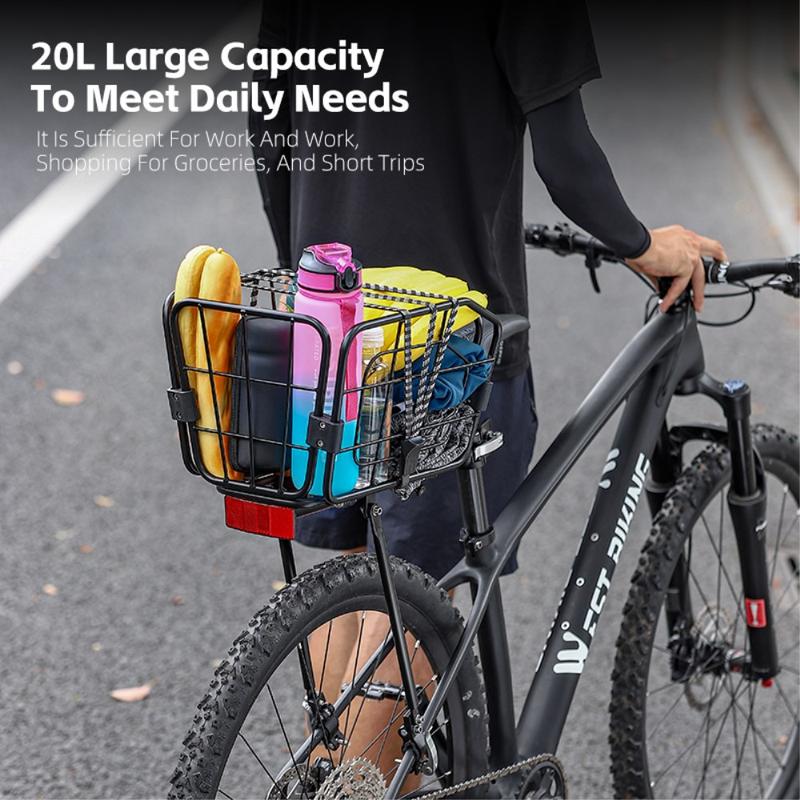 West Biking YP0712036 Bicycle Rear Basket & Rack - 20 L Aluminium Alloy Back Storage, High Load Capacity