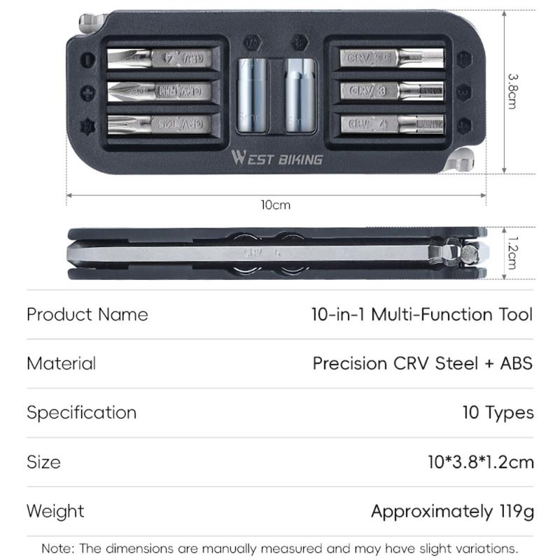 West Biking YP0719446 10-in-1 Portable Bicycle Repair Tool / Multifunction Combination Wrench