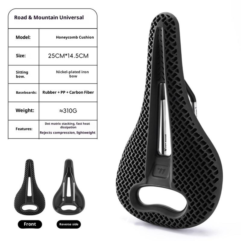 Ride more comfortably with the West Biking honeycomb hollow bike saddle. Designed for road bikes and mountain bikes, this lightweight saddle combines a 3D honeycomb structure, pressure-relief hollow design, and targeted cushioning zones to improve comfort on both short and longer rides.