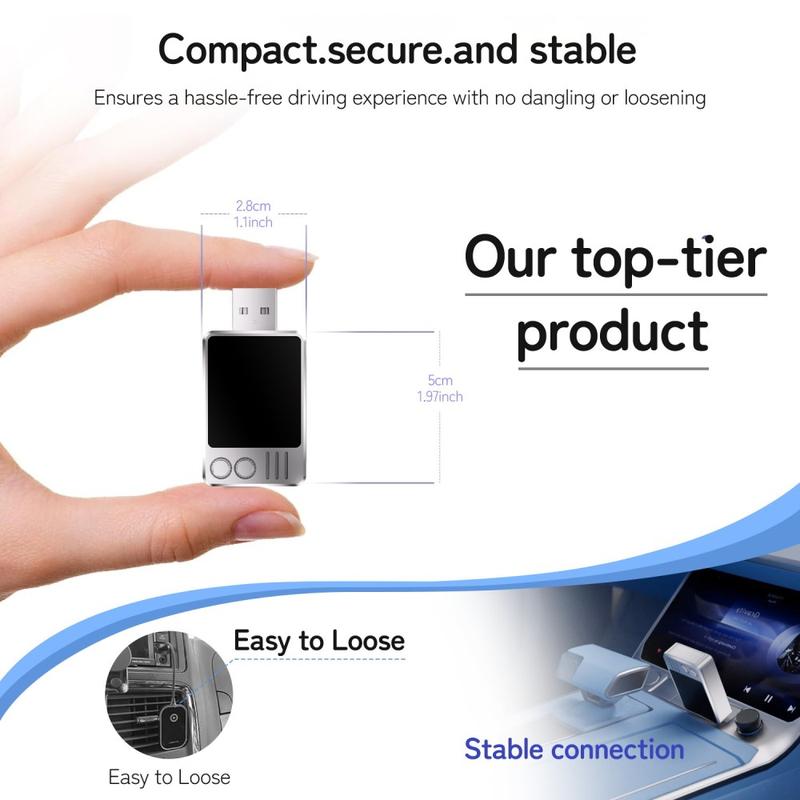 The wired to wireless CarPlay adapter transforms your existing wired CarPlay system into a fully wireless experience. Designed for vehicles equipped with original wired CarPlay, this compact USB dongle eliminates cable clutter while preserving all original CarPlay functions.