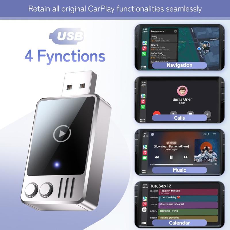 The adapter fully supports all original CarPlay features, including navigation, phone calls, music streaming, messaging and calendar access. Your driving experience remains familiar, just without the cable.