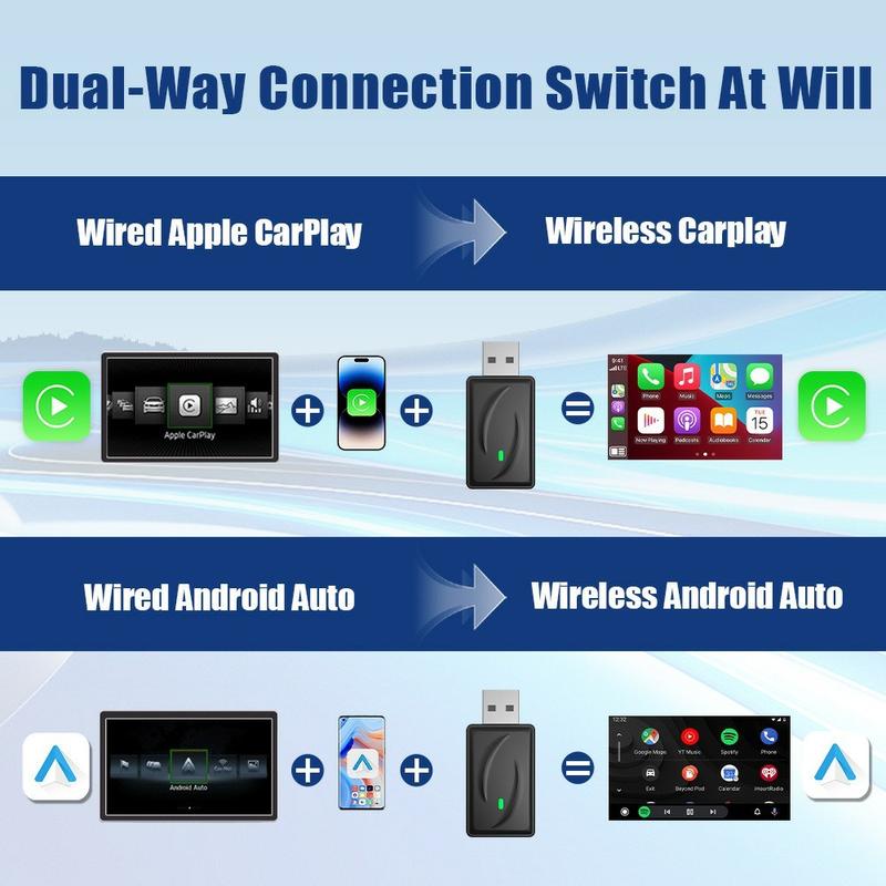 Wireless CarPlay & Android Auto 2-in-1 USB Dongle with USB-C Adapter – Compact Plug & Play for Car Navigation Systems
