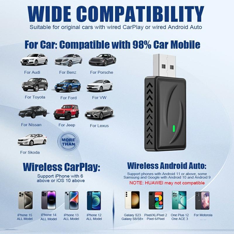 This 2-in-1 wireless adapter offers unbeatable convenience, universal compatibility, and compact design – all in one device. It’s the perfect solution for drivers who want to modernize their vehicle without costly upgrades.