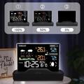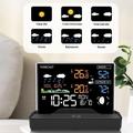 This model includes 6 weather forecast icons that show clear, partly cloudy, cloudy, rainy, stormy, and snowy conditions. It also displays barometric pressure in hPa or inHg, which adds more useful weather-related information for daily planning. The moon phase display adds another practical and visual feature, making the unit feel more complete as a home weather station.