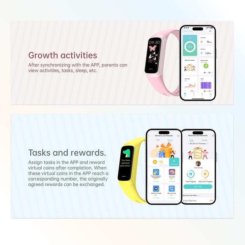 - Parents review daily step counts and sleep quality, then set reminders for water breaks or bedtime
