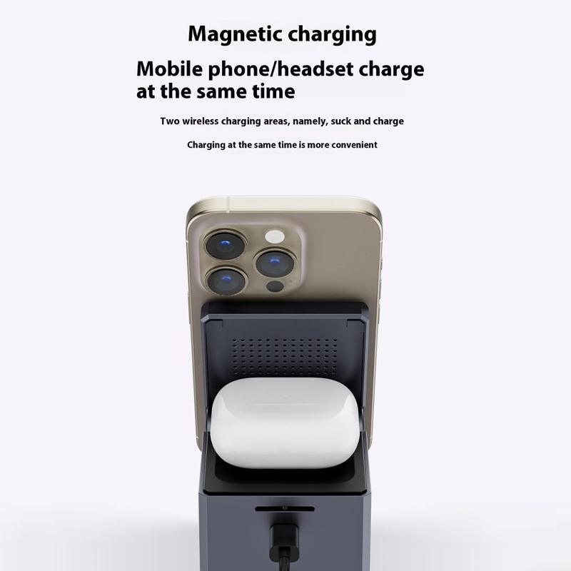 - 3-in-1 Charging: Supports simultaneous charging for iPhone, Apple Watch, and AirPods.