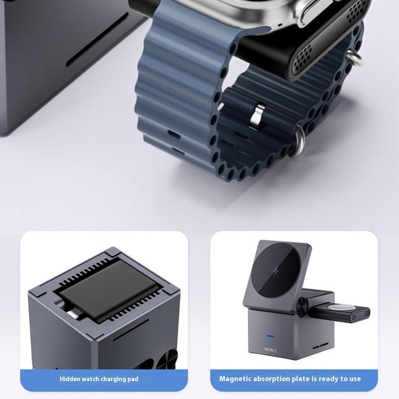 The WIWU Wi-W030 is a versatile 3-in-1 wireless charging stand designed to power your iPhone, Apple Watch, and AirPods simultaneously. With its foldable design and strong magnetic attraction, it offers both convenience and efficiency, making it an essential accessory for those with multiple Apple devices.
