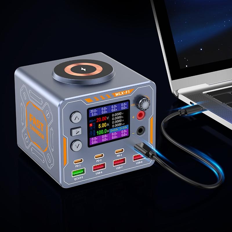 With up to 100W single-port output, the WLX-F1 efficiently powers high-demand devices such as MacBooks and USB-C laptops. It also features an adjustable precision DC output (1.8-12V, 2A), making it ideal for testing, repairing and diagnosing electronic equipment.