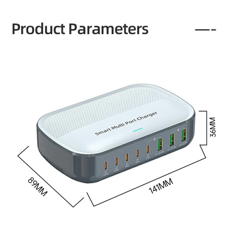 - 8 charging ports: 5 USB-C PD and 3 USB-A QC