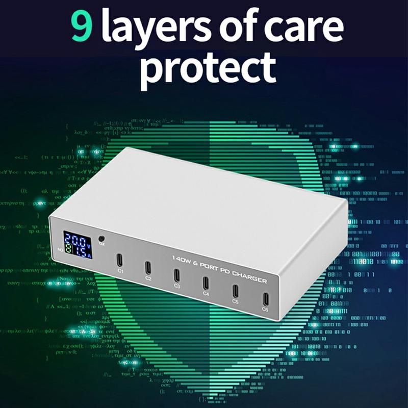 The WLX-X6P delivers strong power output, smart charging intelligence and GaN efficiency in one compact unit. Its six USB-C ports make it ideal for fast-charging multiple devices at once, while its built-in digital display and protection system ensure safe, stable daily use. A perfect all-in-one charging hub for homes, offices and travel.