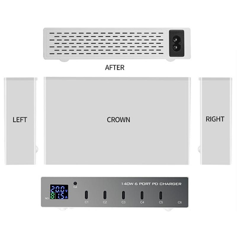 The high-efficiency WLX-X6P 140W desktop charging station is a GaN-powered hub designed for users who need reliable, multi-device fast charging in one compact unit. Equipped with six USB-C ports delivering up to 30W each, it keeps laptops, tablets, smartphones and everyday gadgets powered with ease—perfect for home desks, office setups or shared charging environments.