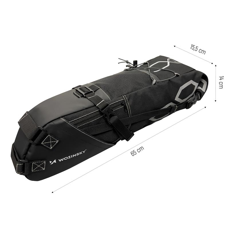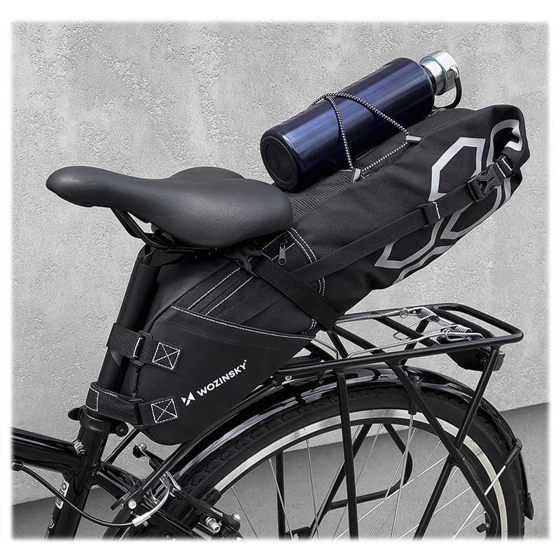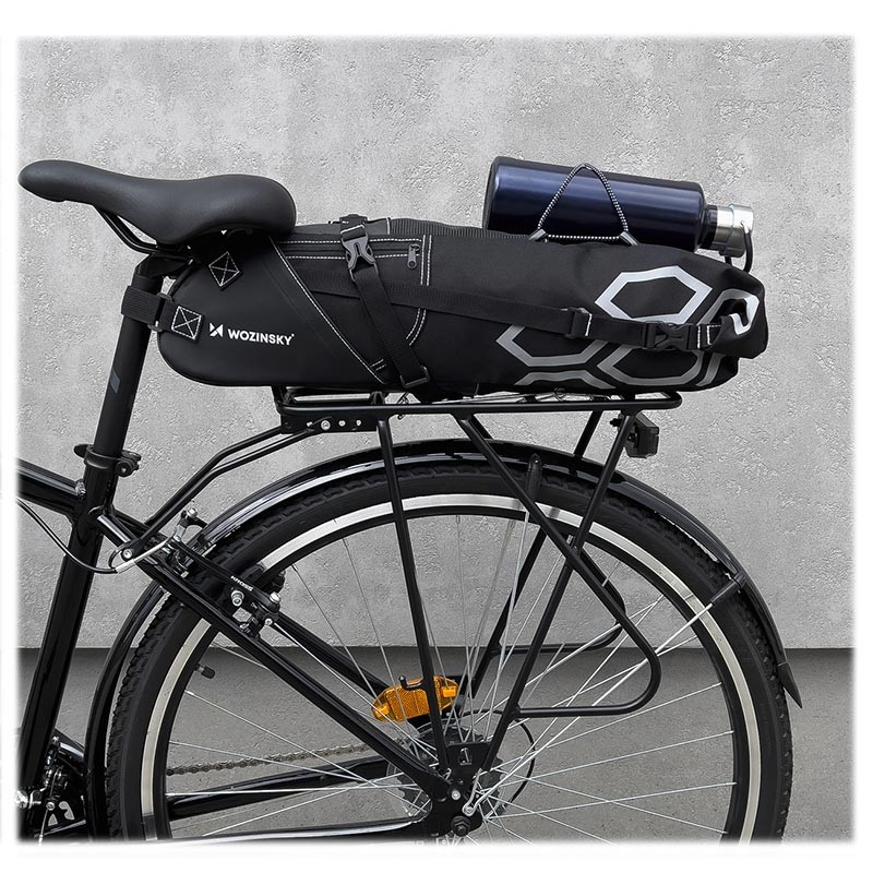 Take the bag off your back and make your travel more comfortable. Simple and fast assemble thanks to the system of buckles and fasteners. Just attach it under the saddle and enjoy riding. Wozinsky WBB9BK is a waterproof, wear-resistant bag with both-sided reflectors, which ensures safety during the night drive. The bag's capacity is 12-liters - ideal for most of your needs. Also, on the outer surface, it has several small pockets and elements for hanging.