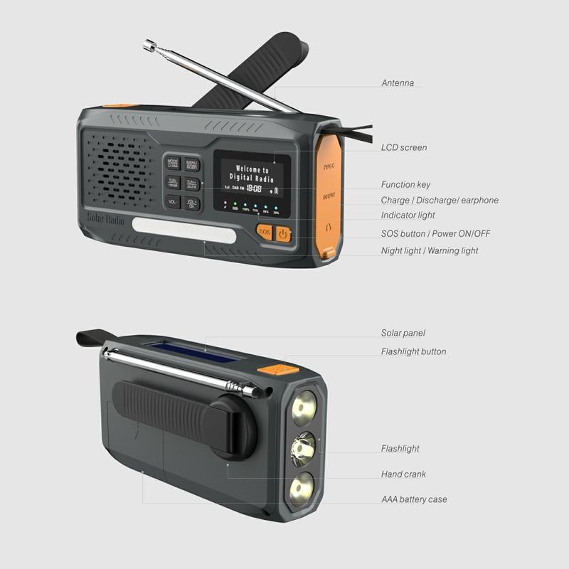 WR-6B Solar Hand Crank Emergency Radio DAB with LED Flashlight - 40 DAB stations, SOS Flashlight, LCD display