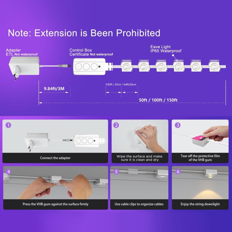 WY021 Waterproof Smart Outdoor Eaves Light / Ambience String Light with Music Sync with App Control, Voice Control