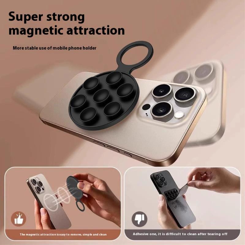 Twelve N52 neodymium magnets team up with a dense silicone suction cup array to lock your phone to glass, tile, metal or glossy dashboards in seconds. The closed magnetic field holds devices up to 1 kg without disturbing GPS or 5G reception, while the vacuum-style cup grips even on bumpy roads.