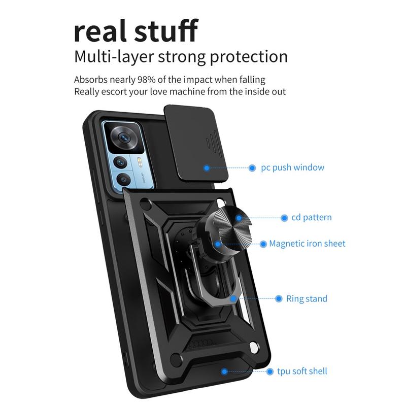 Izrađeno od premijum plastike, TPU i metalnih materijala, ova maska za Xiaomi 12T, 12T Pro, Redmi K50 Ultra je dizajnirana da izdrži test vremena i pruži zaštitu. Sa više funkcija, savršeno štiti Vaš Xiaomi 12T, 12T Pro, Redmi K50 Ultra i čini ga udobnim za korišćenje i gledanje zahvaljujući rotirajućem prstenu na poleđini.
