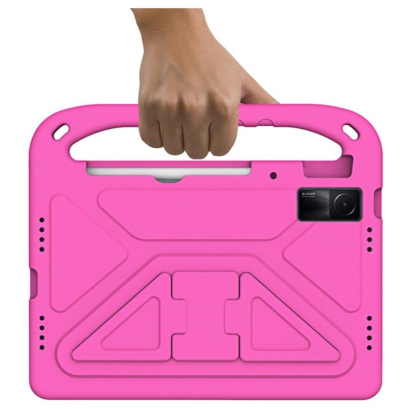 Napravljena je od ekološkog netoksičnog EVA materijala koji je otporan na udarce i ima ojačane ivice i uglove koji štite ekran od ogrebotina i lomljenja. Oslonac na poleđini ove fantastične futrole za Xiaomi Redmi Pad omogućuje udobno handsfree gledanje video sadržaja, dok ručka za nošenje futrolu čini još praktičnijom i zabavnijom za decu.