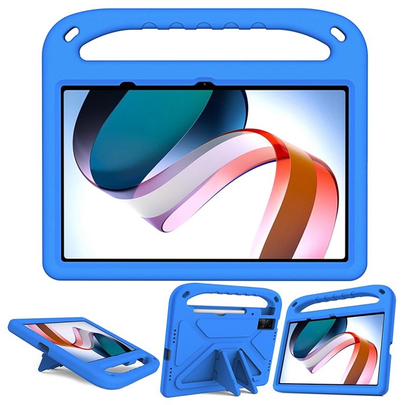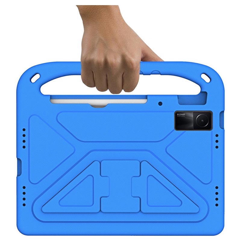Napravljena je od ekološkog netoksičnog EVA materijala koji je otporan na udarce i ima ojačane ivice i uglove koji štite ekran od ogrebotina i lomljenja. Oslonac na poleđini ove fantastične futrole za Xiaomi Redmi Pad omogućuje udobno handsfree gledanje video sadržaja, dok ručka za nošenje futrolu čini još praktičnijom i zabavnijom za decu.