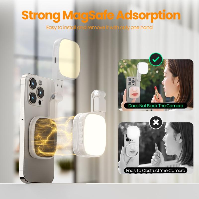 Upgrade your photos, video calls, and live streams with the XJ105 magnetic LED fill light—an ultra-portable lighting tool designed for creators, commuters, and anyone who wants flattering light on demand. The strong magnetic attachment lets you snap it on with one hand without blocking your phone s cameras, and if your phone isn't magnetic, the included magnetic ring solves that in seconds. With 48 LED beads (warm + cool), 3 colour temperature modes, and 10 brightness levels, you can quickly dial in the right look—soft and warm for evening content, neutral for meetings, or cool and crisp for detailed shots. Add the foldable design and multi-angle rotation, and the XJ105 becomes your compact studio light that fits in a pocket.