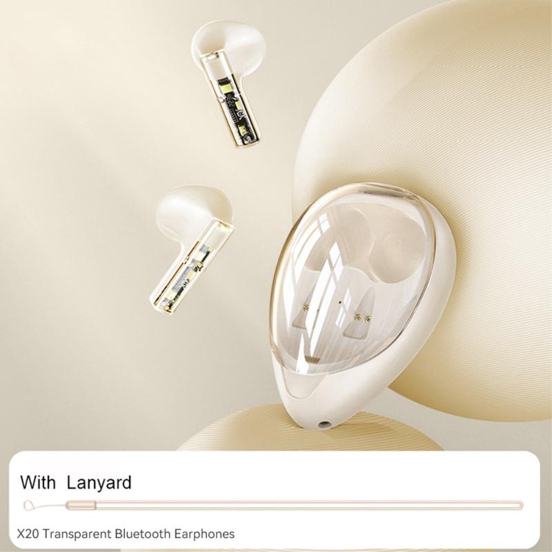 • XUNDD X20 Transparent TWS Bluetooth Earphone Wireless Stereo Music Touch Headset - Apricot