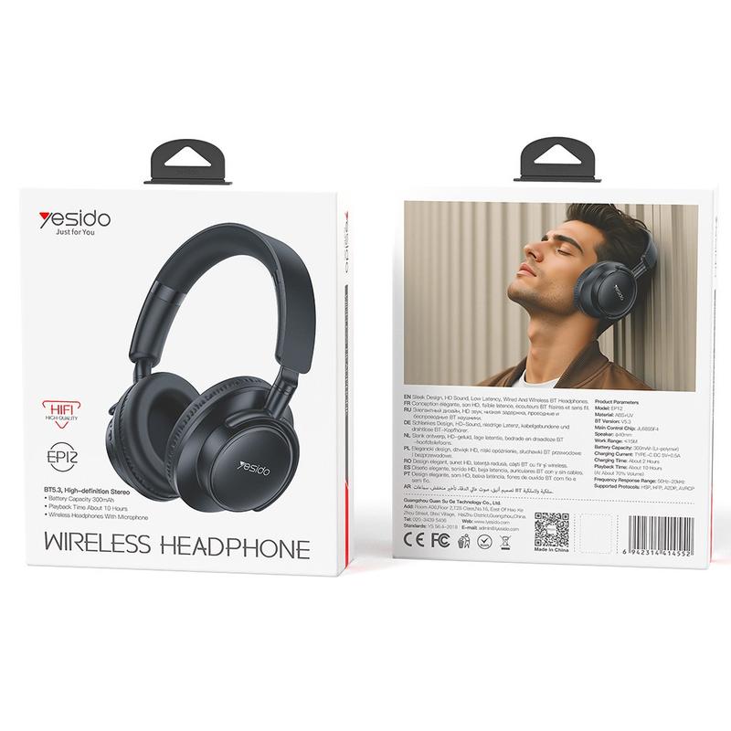 Designed with a lightweight, ergonomic structure, the YESIDO EP12 offers over-ear comfort without adding pressure to your ears. Perfect for long listening sessions at home, work, or while travelling.