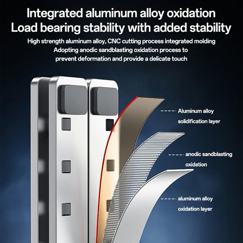Aluminum alloy stands like the LP07 not only enhance aesthetics but also act as natural heat dissipators, helping keep laptops cool during heavy use. The oxidized surface also resists fingerprints and scratches, ensuring lasting beauty and performance.