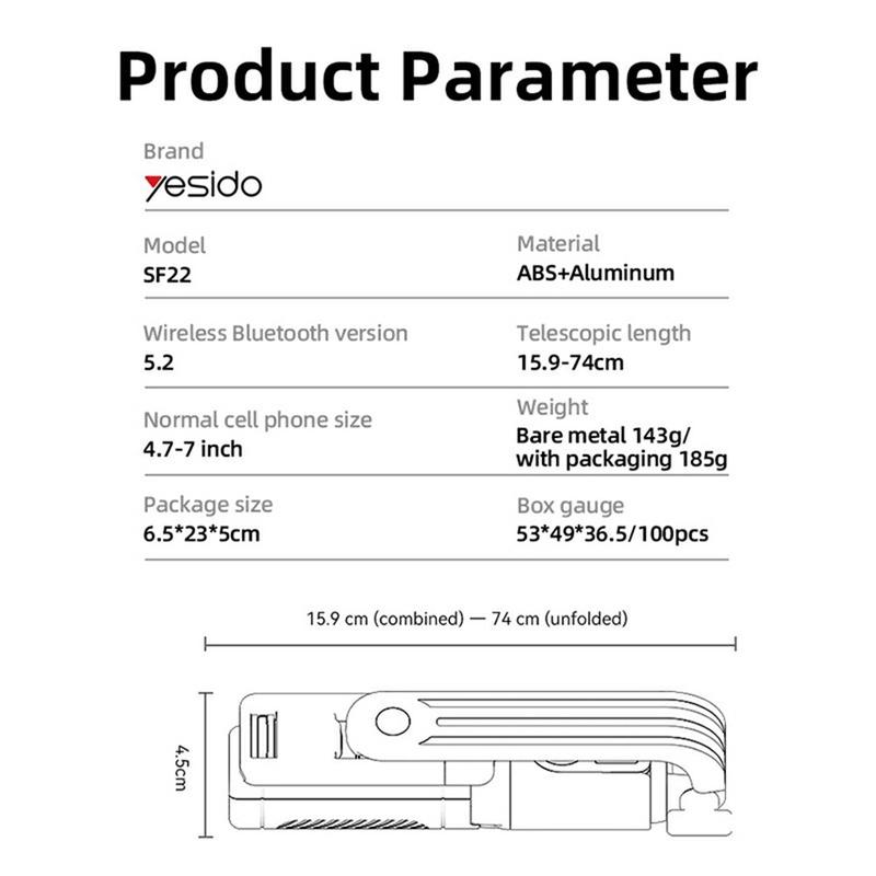 Bring professional-grade versatility to your pocket—add the YESIDO SF22 Outdoor Mini Selfie Stick Tripod to your cart and elevate every photo you take!