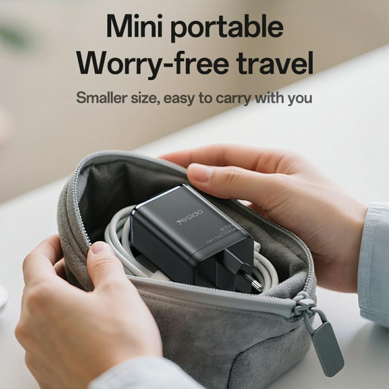 Charge smarter and faster with the YESIDO YC100 67W GaN Fast Charger, a compact and efficient solution designed for modern devices. Equipped with dual ports, advanced Gallium Nitride (GaN) technology, and a built-in retractable cable, it combines power, convenience, and safety — perfect for home, office, or travel use.