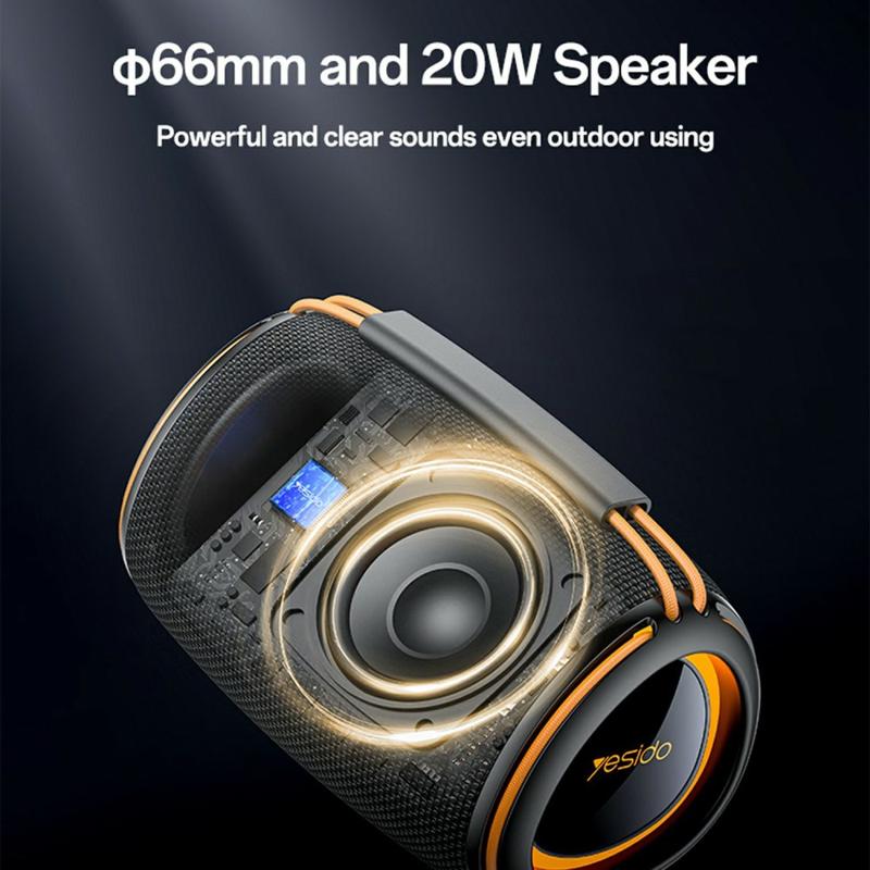 Bring powerful sound and modern style to your space with the YESIDO YSW39 Bluetooth Speaker. Designed to deliver deep bass, clear mids, and crisp highs, this 20W speaker ensures an immersive listening experience whether you’re at home, outdoors, or on the go. With multiple playback modes, dynamic RGB lighting, and long-lasting battery life, it’s the perfect companion for music lovers who value both performance and design.
