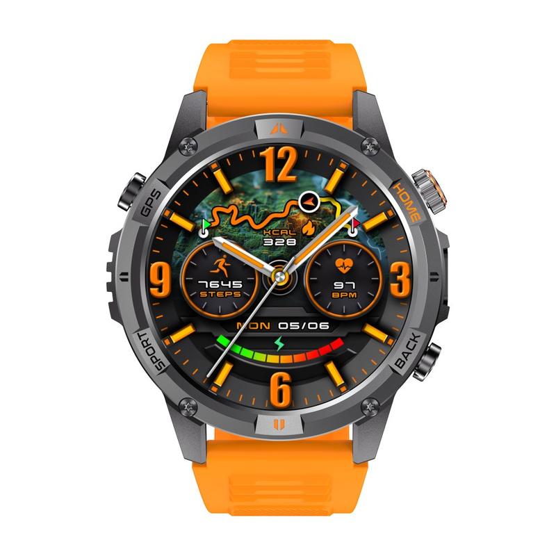 Designed for outdoor adventures, the watch features a built-in flashlight, GPS positioning and a digital compass, helping you navigate trails and track your routes with confidence. Its 580 mAh high-capacity battery offers long-lasting performance, delivering up to 40 days of standby time and approximately 7 days of regular use. With an IP68 waterproof rating, it withstands rain, splashes and swimming without worry.