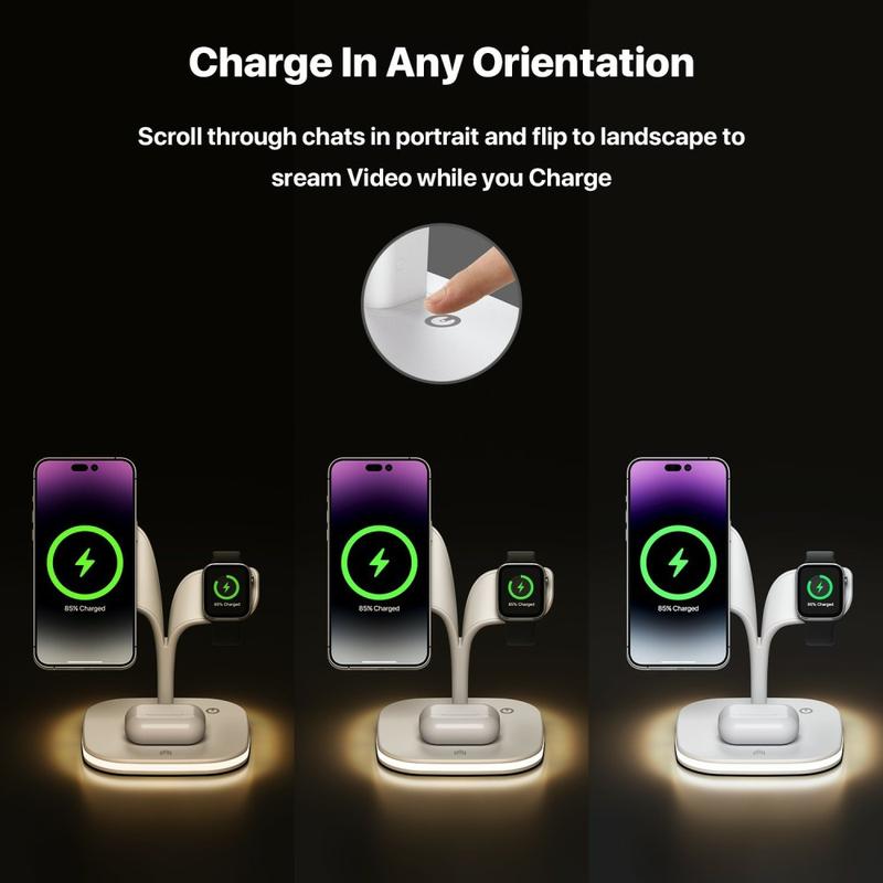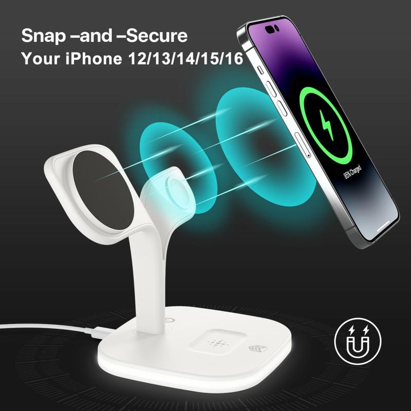 YM-UD22 Pro 3-in-1 MagSafe Charging Station with Night Light for iPhone, Apple Watch, and AirPods - 15W, 3W, 2W