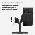 - 3-in-1 Wireless Charging: Equipped with two built-in charging pads compatible with MagSafe, this station allows for simultaneous charging of your iPhone, Apple Watch, and AirPods, streamlining your charging needs.