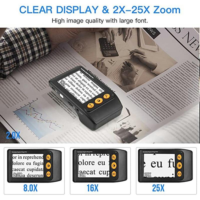 YS008 Portable Electronic Visual Aid Magnifier – 3.5-Inch Display, 2X–25X Digital Zoom