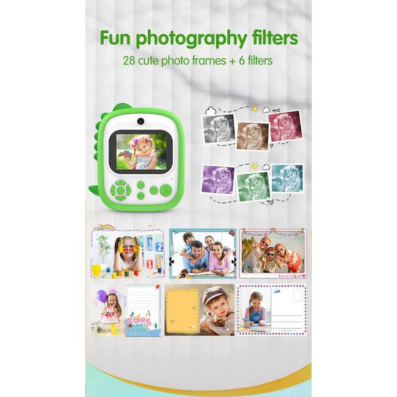 YYTech P3 T-Rex Instant Printing Kids Camera - 1080P, 2.4" Dual Lens, Flash