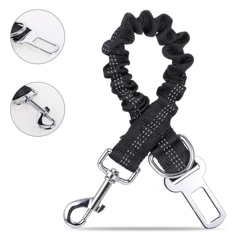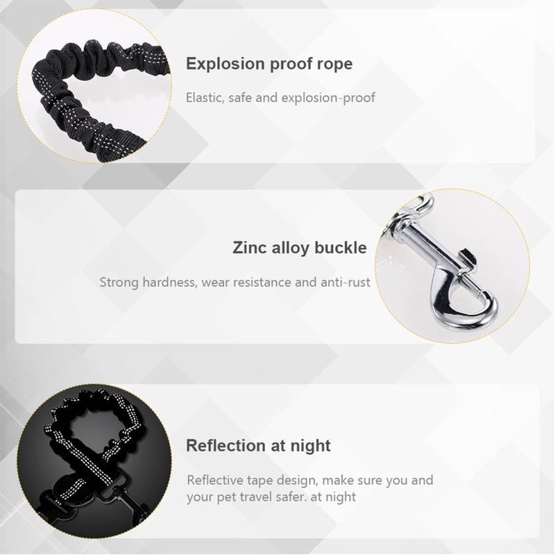 Zinc Alloy Multifunctional 3-in-1 Dog Seat Belt for Car - Harness with Bungee Buffer and Reflective Design